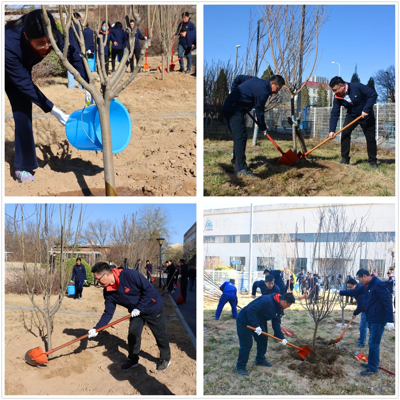 After more than an hour of solidarity and cooperation, the begonia, cherry blossom, magnolia, apple and grape saplings in the corporate culture park stood upright against the wind, decorating the campus full of vitality.