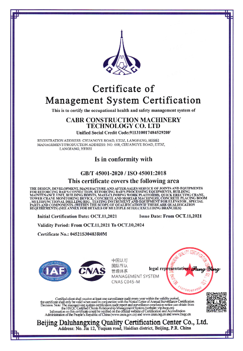 Our company has ISO 45001 and ISO14001 certificate now.