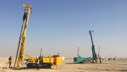 The project belongs to maktoum solar Park in the desert region of South Dubai. The pile foundation construction part includes 5016 cast-in piles and 39936 micro piles. The drilling rig is required to drill 10° inclined hole, drill depth is no less than 6 meters, and enter the rock 2 meters.