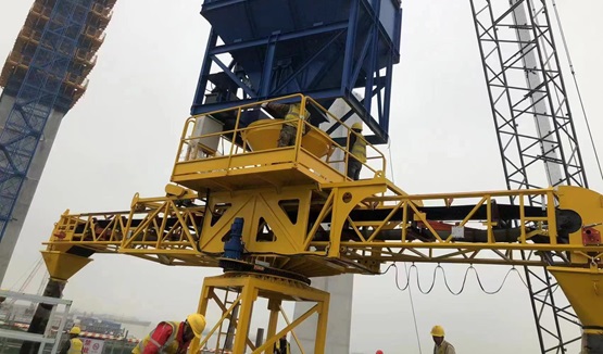The equipment can rotate within a 360° range, and has functions such as column top feeding, left and right movement and luffing,and discharging and pouring at both ends.