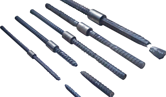 2. Stripping the ribs at the end of rebar and then rolling thread;
