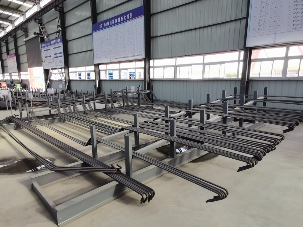 Among them, steel bar processing digital projects include GQX-300 CNC steel bar shearing production line, GWXL2-32D CNC bending center, GWXL4-25D CNC bending center, GQX-GWX-25 CNC steel bar shearing and bending integrated production line, GGJ12 CNC steel bar bending hoop machine, GT5-12 straightening machine (32 meters), GTWQ12 straightening five heads, HJDW12 welding positioning net and other equipment. A variety of steel bar products can be customized to produce high-speed rail box girder prefabricated construction.
