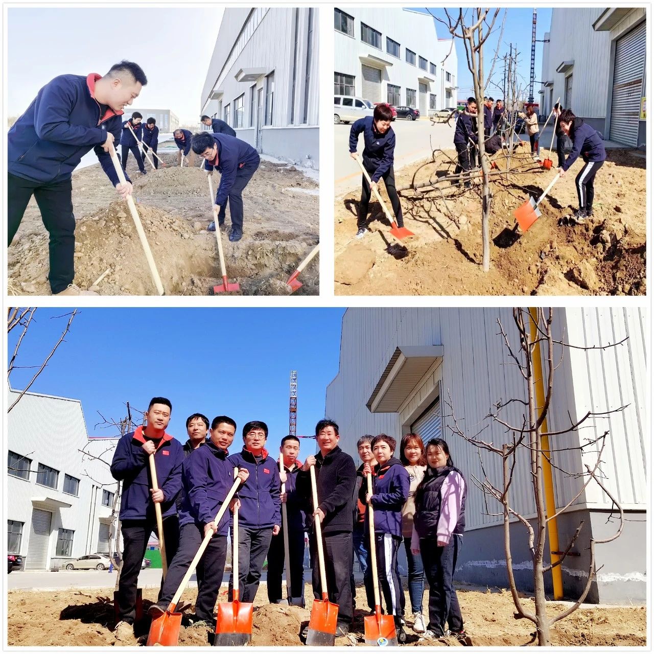 After more than an hour of solidarity and cooperation, the begonia, cherry blossom, magnolia, apple and grape saplings in the corporate culture park stood upright against the wind, decorating the campus full of vitality.