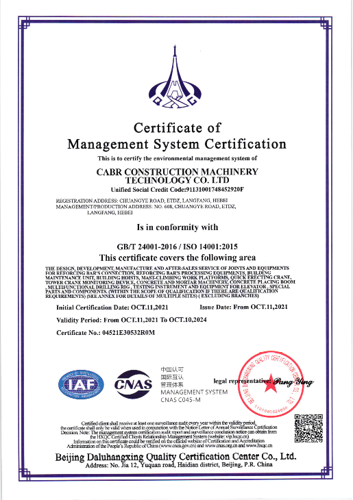 Our company has ISO 45001 and ISO14001 certificate now.