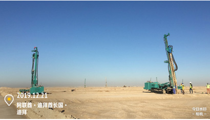 The project belongs to maktoum solar Park in the desert region of South Dubai. The pile foundation construction part includes 5016 cast-in piles and 39936 micro piles. The drilling rig is required to drill 10° inclined hole, drill depth is no less than 6 meters, and enter the rock 2 meters.