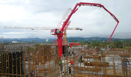 HGY33 concrete placing boom is used for concrete placement with the aid of a concrete pump. It is suitable for the construction of any concrete structures, such as buildings, bridges, foundations, etc. Equipped with a self-climbing system, the placing boom is more applicable for high-rise buildings, greatly improving the efficiency of construction and the quality of concrete placement, and decreasing labor intensity.