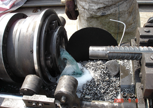 2. Stripping the ribs at the end of rebar and then rolling thread;